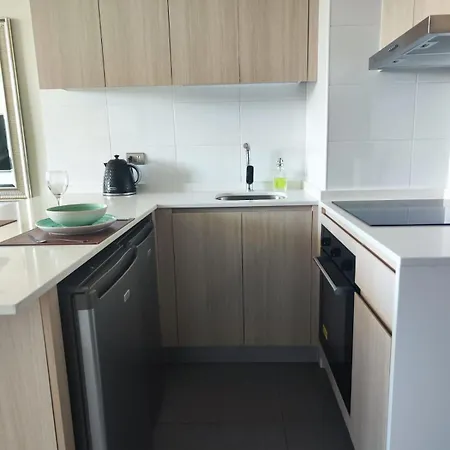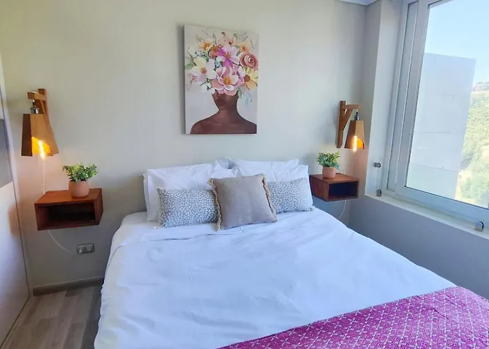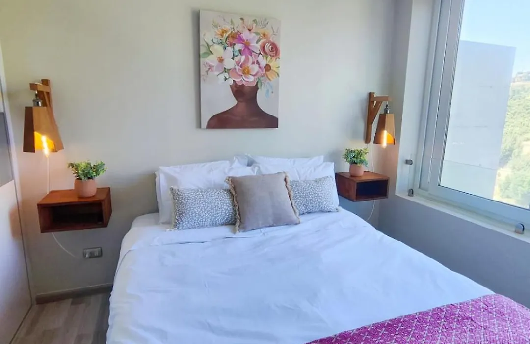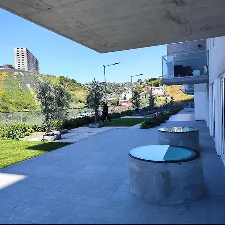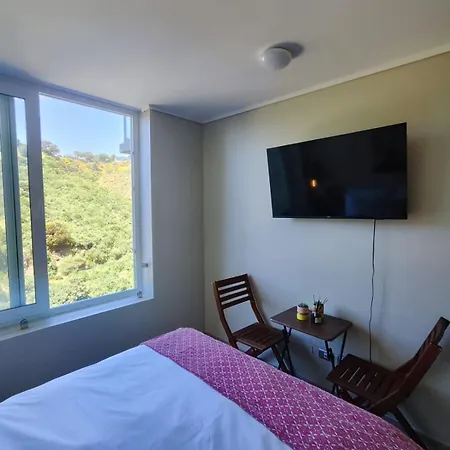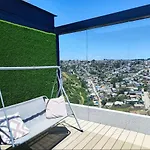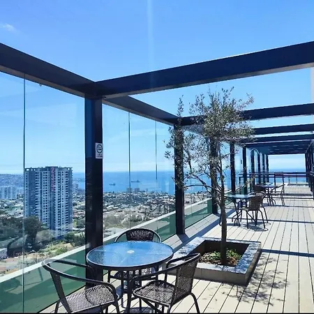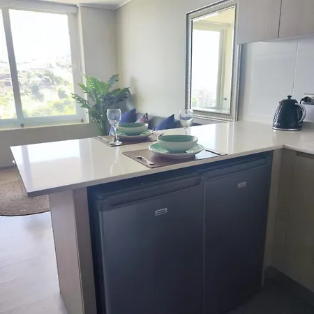 Experience ultimate comfort in 402 Depto Con Azotea Panoramica! Apartment's kitchen, supplied with an electric kettle, a refrigerator, and kitchenware. Viña del Mar Bus Terminal train station is located approximately 10 minutes by car from the apartment.