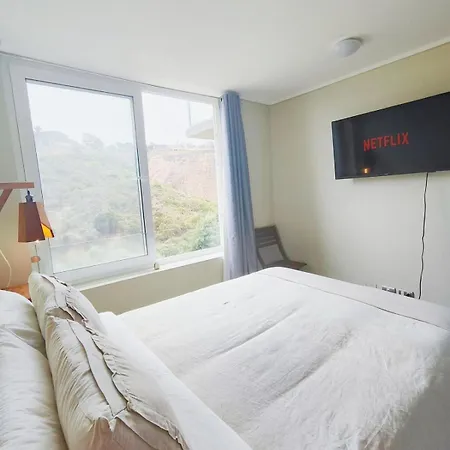 To enjoy your vacation in Vina del Mar, stay at 402 Depto Con Azotea Panoramica! Apartment Vina del Mar, which is nearly a 25-minute walk from the Mirador Pablo Neruda and 2.8 km from the Playa Caleta Portales.